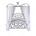 Łóżko metalowe SIMPLEX z baldachimem i tkaniną swobodnie owiniętą wokół nóg baldachimu