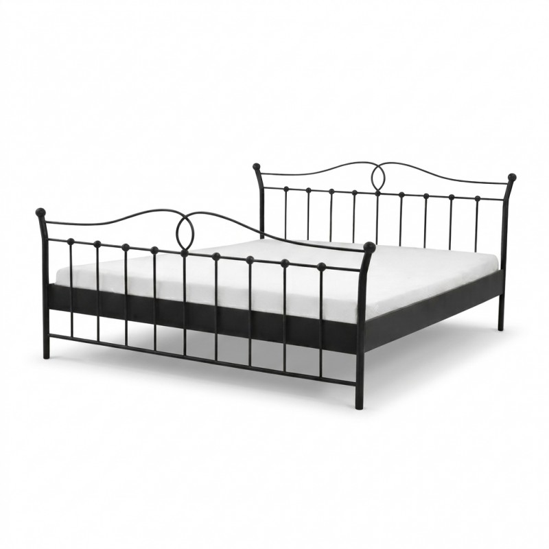 Metalowe łóżko LIZA, choć ciężkie i stabilne, prezentuje lekką i harmonijną formę. Ten elegancki mebel przyciąga wzrok fantazyjnym zdobieniem tyłu i wezgłowia, kulistymi zakończeniami i ciekawie wygiętymi nogami. To doskonałe rozwiązanie do sypialni wykończonej niemal w każdym stylu. Starannie wykonana konstrukcja została pomalowana najwyższej jakości farbami proszkowymi. Całość dodatkowo wzmacnia środkowa listwa z piątą nogą. W cenie dwa stelaże rolowane z listew bukowych wypukłych, które pasują do wszystkich typów materacy. Odległość między listwami to maksymalnie 3,5 cm. Nogi zostały zabezpieczone plastikowymi korkami.