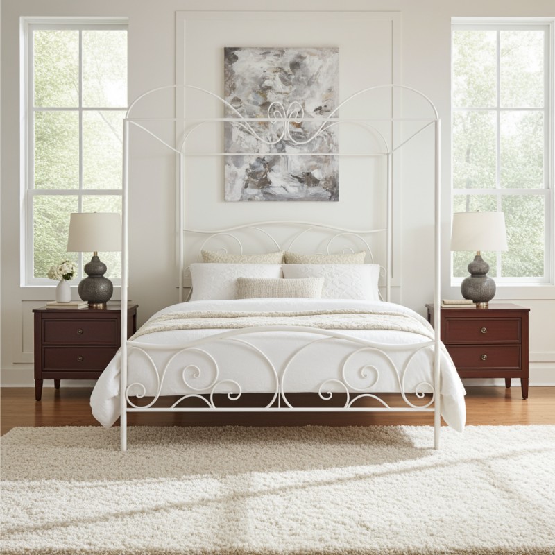 Ręcznie formowane, symetryczne zdobienia dają temu modelowi charakter typowy dla DNA marki Francke-Art: subtelne, eleganckie, a jednocześnie wyraziste. Mimo dekoracyjnych linii łóżko jest stabilne, odporne na obciążenia i nie traci sztywności podczas użytkowania. To efekt stalowej konstrukcji produkowanej przez producenta łóżek metalowych z wieloletnim doświadczeniem.