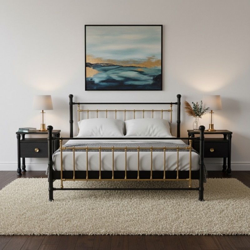 Czarna stal ze złotymi akcentami – to złote łóżko o niepowtarzalnym charakterze, które doda Twojej sypialni luksusowego blasku.